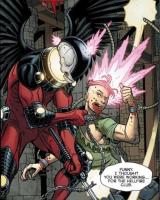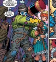 WOLVERINE dressed as a clown from WOLVERINE AND THE X-MEN issue 22. Pencils by Nick Bradshaw, inks by Walden Wong